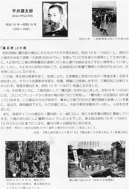 三嶋大社から三島広小路駅までの約700mを歩行者天国にし、山車とシャギリ、郷土芸能農兵節