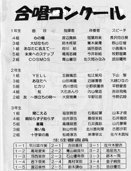 | 合唱コンクール終了、エンディングセレモニー