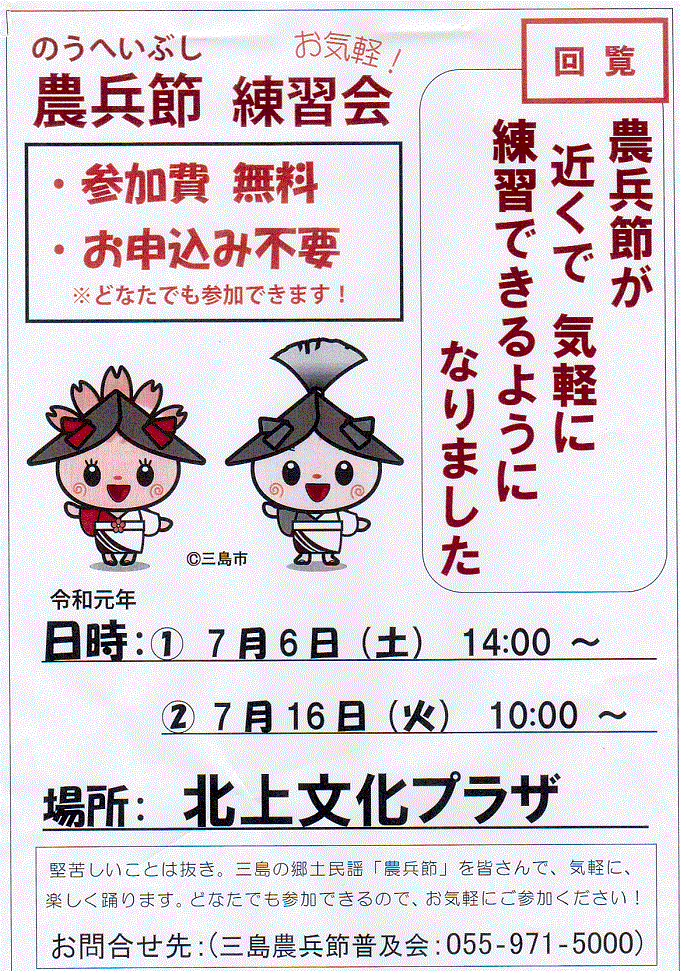 三嶋大社から三島広小路駅までの約700mを歩行者天国にし、山車とシャギリ、郷土芸能農兵節