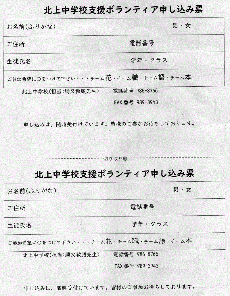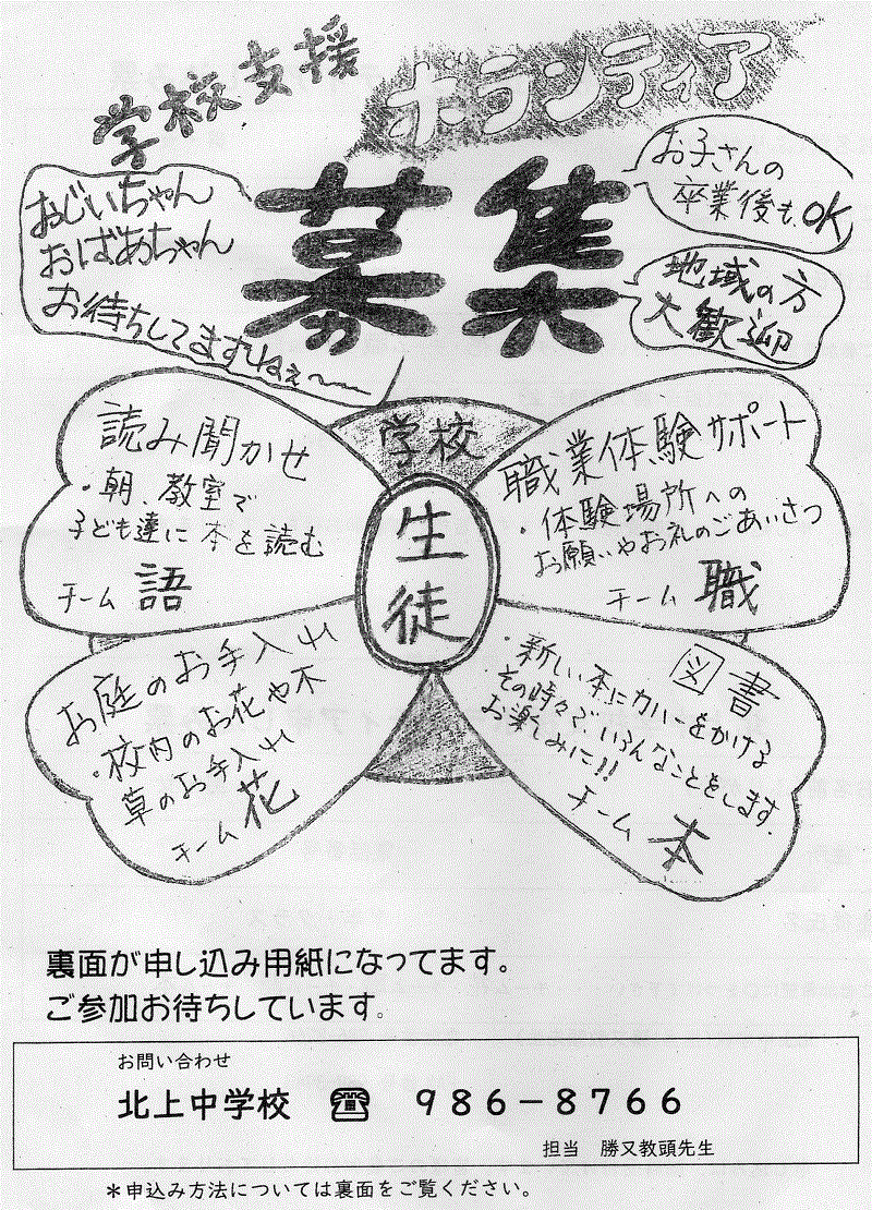 - 北上中学校ボランティア募集