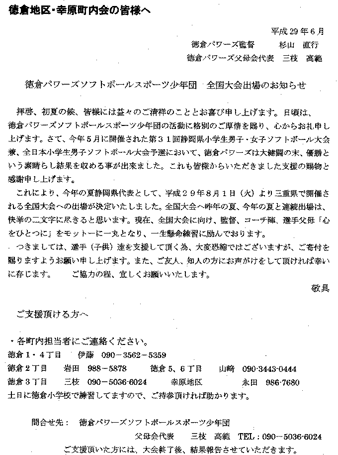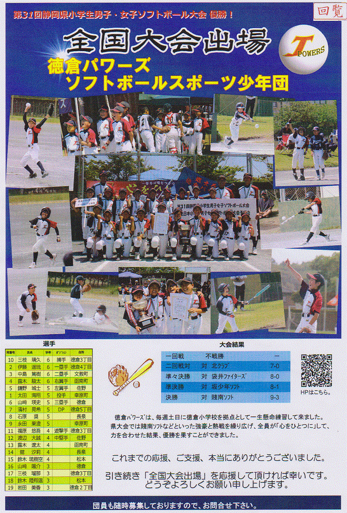 - 徳倉パワーズソフトボールスポーツ少年団全国大会出場