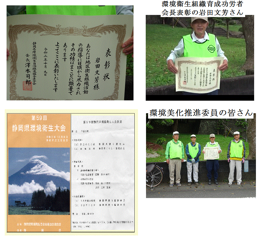 - 静岡県環境衛生大会で岩田文芳さん(徳倉)が表彰されました。